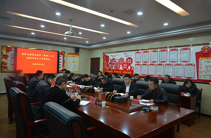 2月13日下午,貴州中建偉業(yè)建設(集團)有限責任公司黨委副書記、總經理馮安翔主持召開2023年項目謀劃工作部署會。集團公司黨委委員、副經理王引明、王振田,總經理助理田應欽出席會議,集團公司經營部、綜合辦公室、建筑勘察設計院和全州16個縣(市)子公司負責人參加會議。