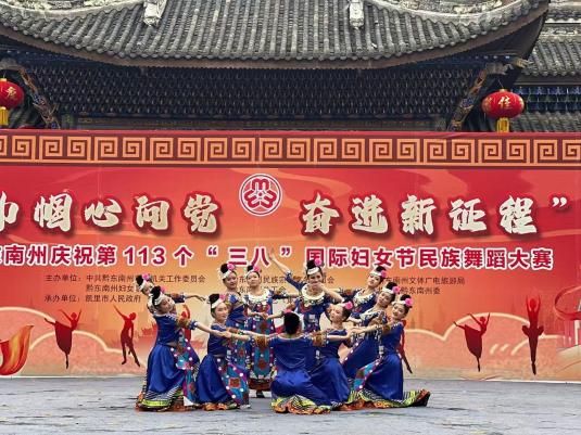 3月6日,黔東南州婦聯(lián)聯(lián)合州直機關工委、州民宗委、州文體廣電旅游局、州總工會、團州委共同舉辦的“巾幗心向黨 奮進新征程 鑄牢中華民族共同體意識”民族舞蹈大賽在凱里市下司鎮(zhèn)舉行,集團工會積極組建舞蹈隊參加比賽,榮獲最佳風采獎。