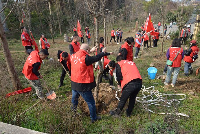 活動(dòng)現(xiàn)場(chǎng)紅旗飄飄,大家的熱情空前高漲,一片熱火朝天的植樹景象映入眼簾。團(tuán)委副書記楊紹燦帶領(lǐng)集團(tuán)公司青年團(tuán)員分頭行動(dòng)、明確分工。搬樹入坑、栽植、覆土、澆水,每一步步驟都有條不紊的進(jìn)行,在大家的共同努力下,本次的植樹活動(dòng)取得了圓滿成功。